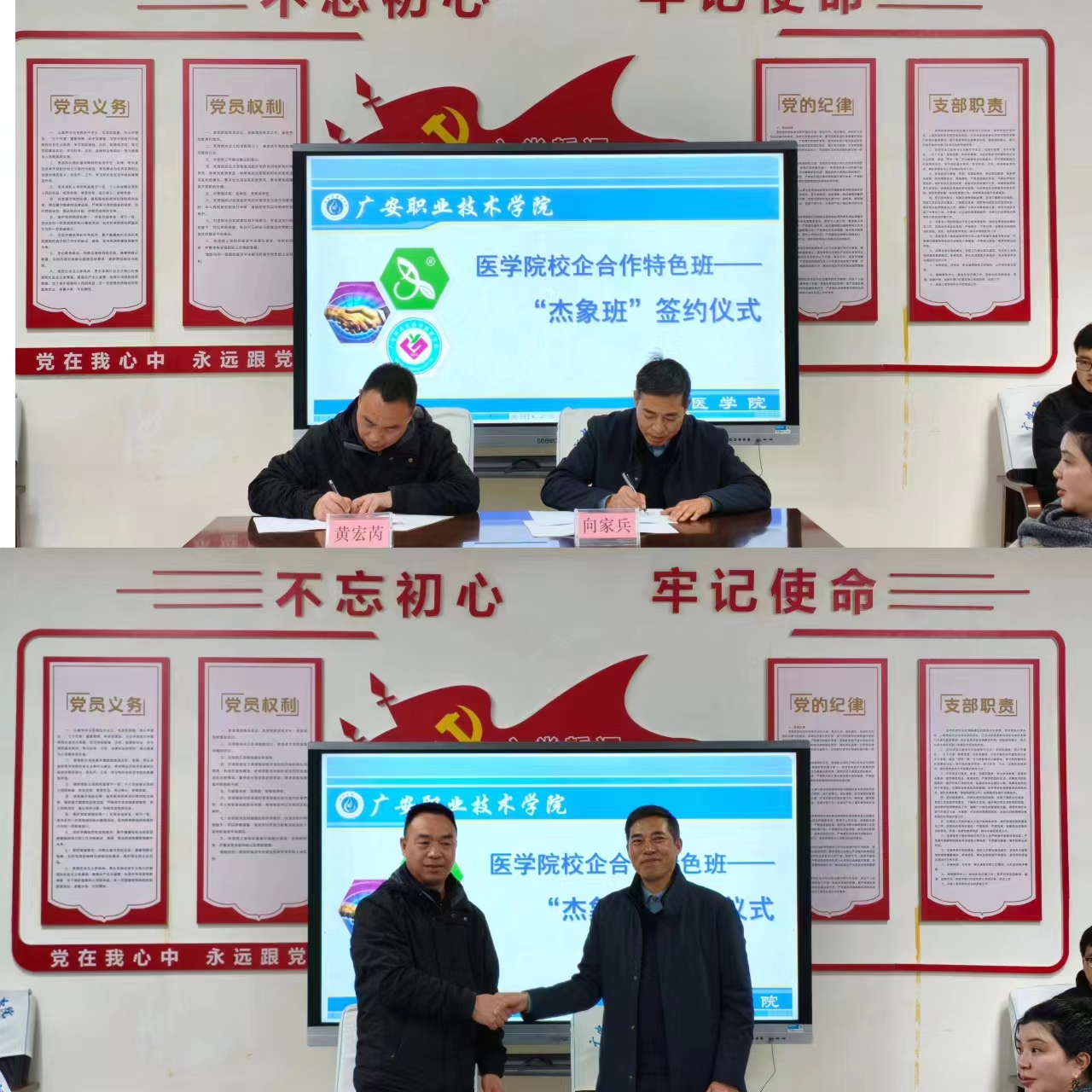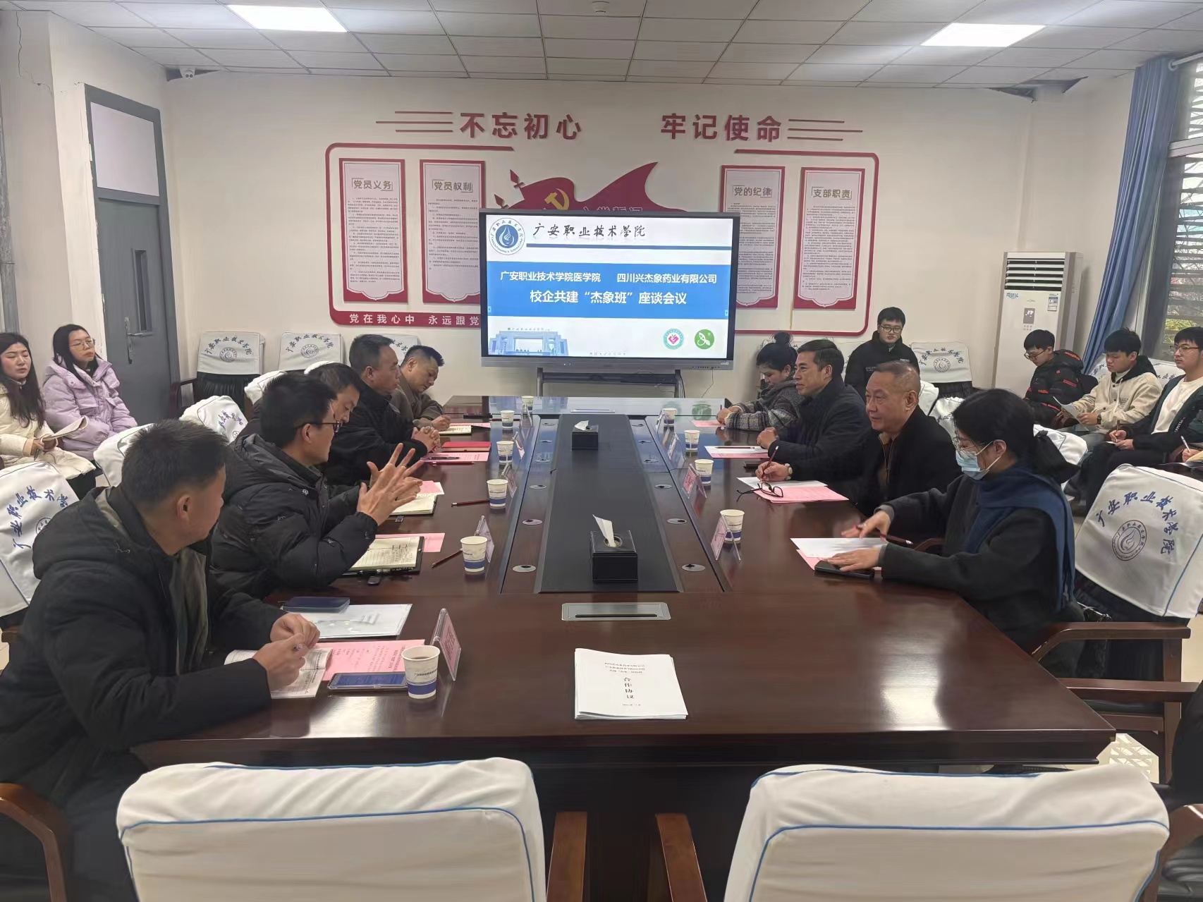 为深化产教融合,共同培育高素质药学专业人才,2025年12月24日下午,四川兴杰象药业有限公司与广安职业技术学院医学院,在学院明辉楼A118会议室成功举办校企共建“杰象班”合作会议。此次会议标志着双方在药学人才培养方面的战略合作正式启动,也为学生搭建起更加贴近产业、注重实践的全新成长平台。