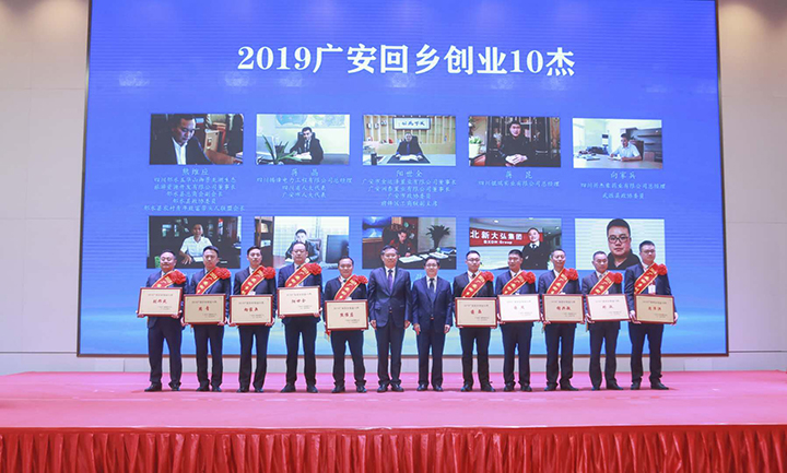 会上,李建勤书记代表市委、市人大常委会、市政府、市政协和470万广安人民向海内外广商致以诚挚问候。并表示道,市委市政府始终牵挂广商、支持广商,专门出台了《关于支持乡友返乡创业发展工作的意见》和《关于支持民营经济健康发展的实施意见》,推出了25条政策措施,进一步优化投资兴业环境。现场大会还发布了“2019广安民营工业企业10强” “2019广安民营企业10强” “2019广安回乡创业10杰”,我公司总经理向家兵获得广安市“2019广安回乡创业十杰”荣誉称号,李建勤书记现场对获得荣誉称号的企业和个人授牌。
